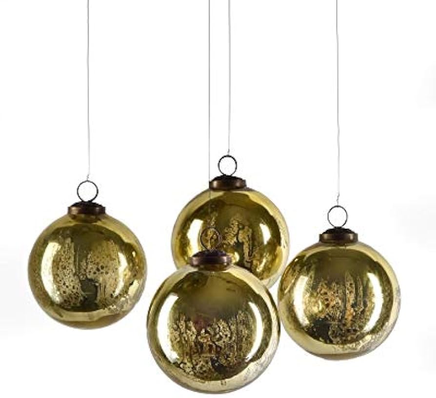 Amazon Com Set Of 4 Gold Mercury Glass Ornaments 3 15 Antique Embossed Ball Perfect For Christmas Tree Hanging Holiday Decoration Gifts Home Decor Home Kitchen
