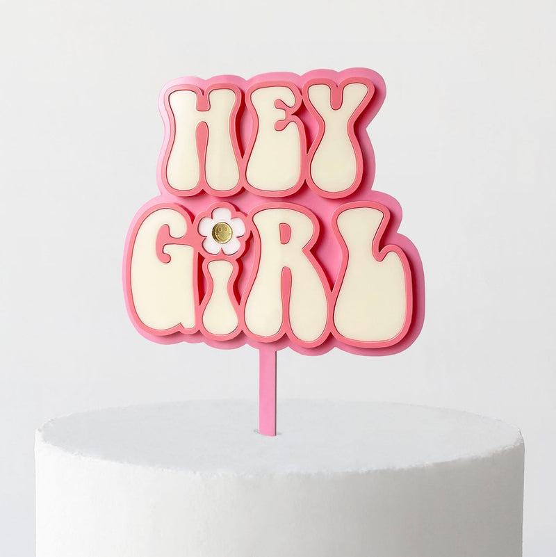 Cake Topper Hey Girl Pink Cream Strawberry Acrylic Cake Topper Latorta
